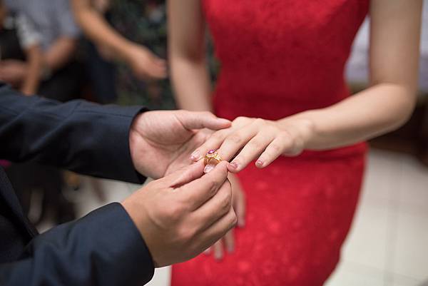 奉茶儀式完成後,再來就是交換戒指及長輩戴金飾的步驟。